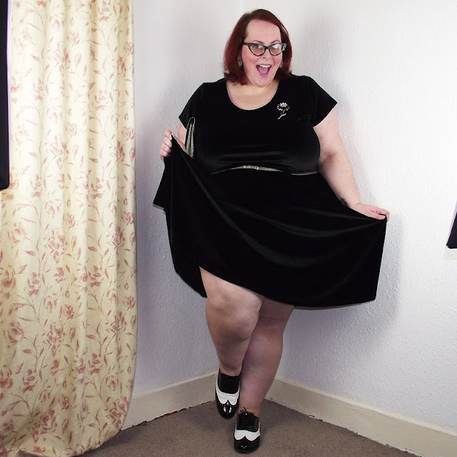 I wore grey Snag tights with it and used the fabric belt from the dress as a tie with pin to look smart. The glasses are Red Or Dead and were available from Specsavers years ago and I missed out. I have been on the hunt for a pair ever since and found these at Retro Spectacle.